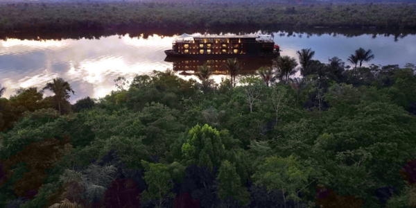 Estableciendo un nuevo estándar para los cruceros fluviales de lujo por el río Amazonas, Aqua Nera se inspira en el diseño de las místicas lagunas de aguas negras del Amazonas peruano.