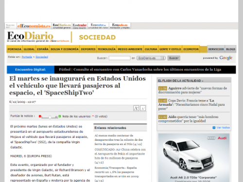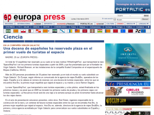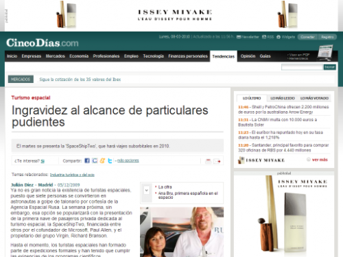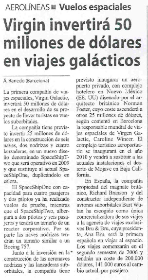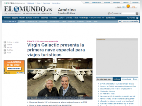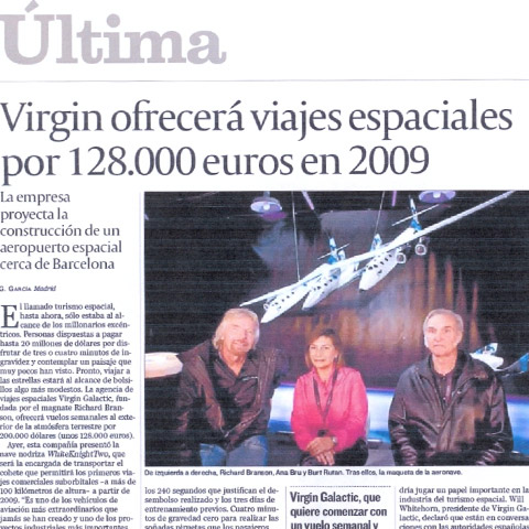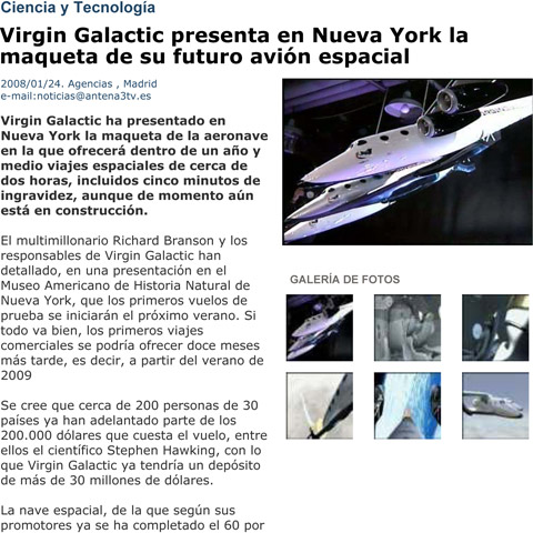 Virgin Galactic ofrecerá viajes espaciales en 2009 – Cinco Días