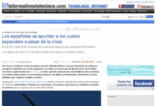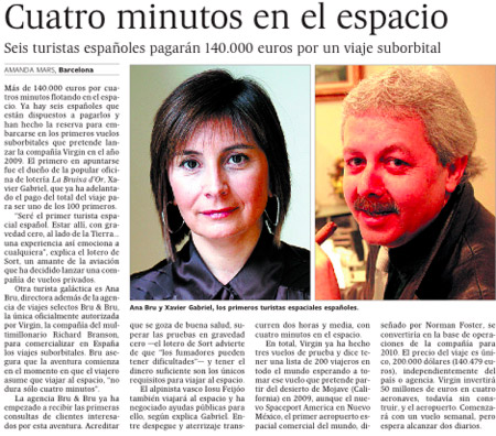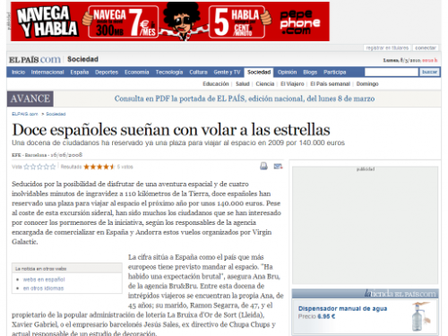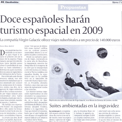 Doce españoles harán turismo espacial en 2009 – Cinco Días