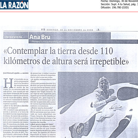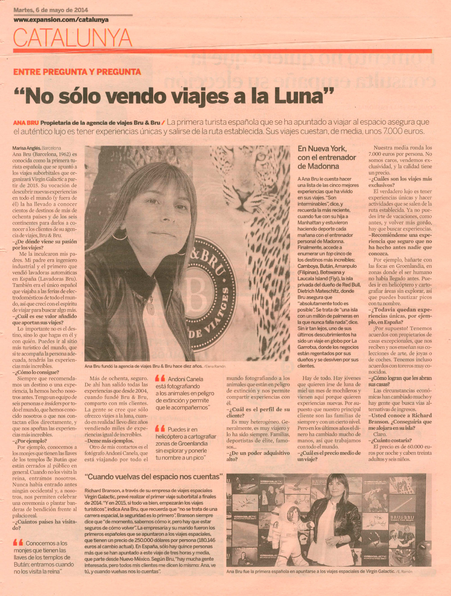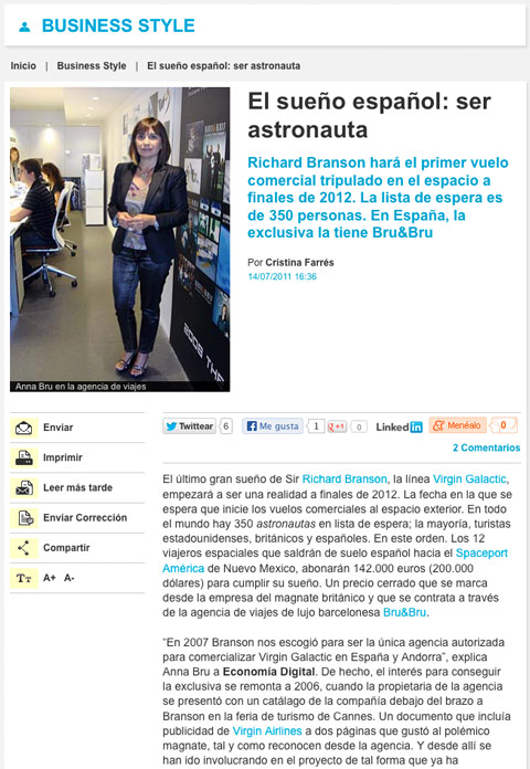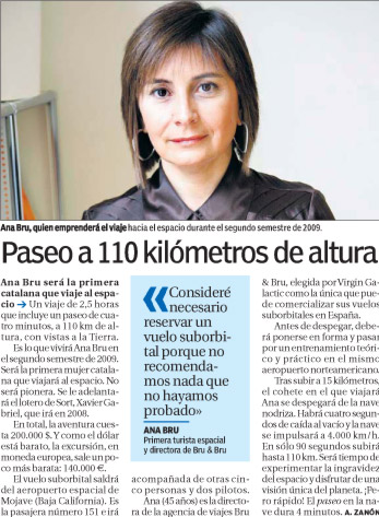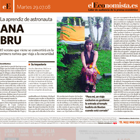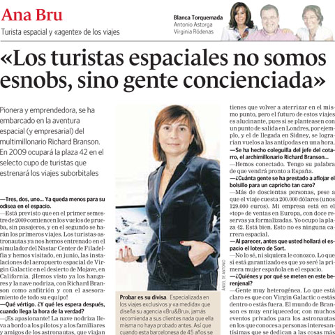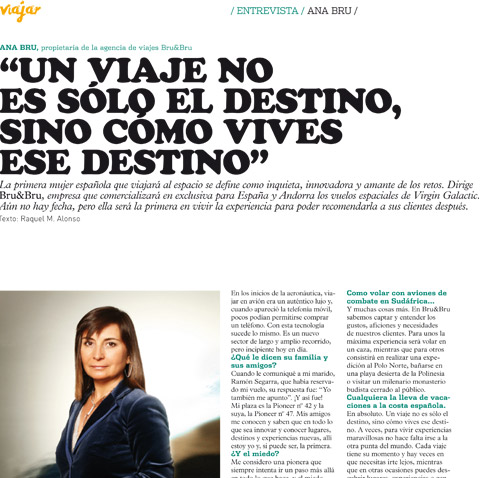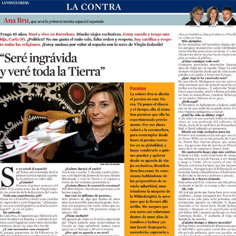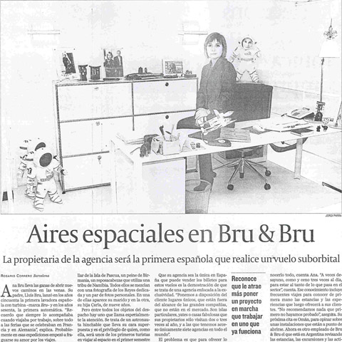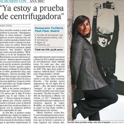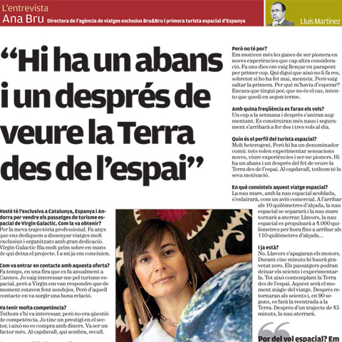 Entrevista a Ana Bru, de Bru & Bru, en El Periódico. Futura astronauta de Virgin Galactic