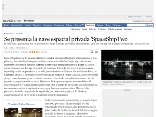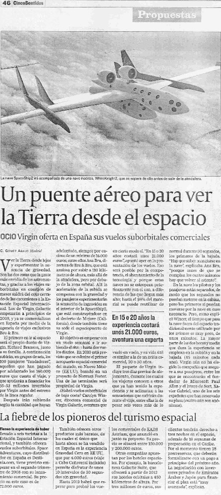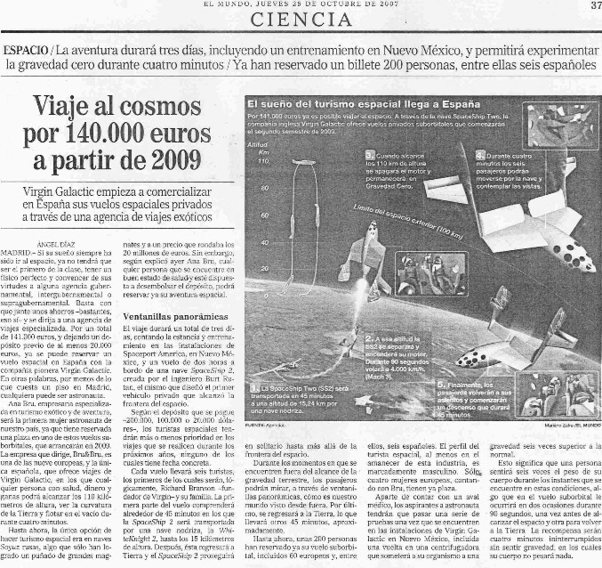 Una nave espacial para turistas – El Mundo