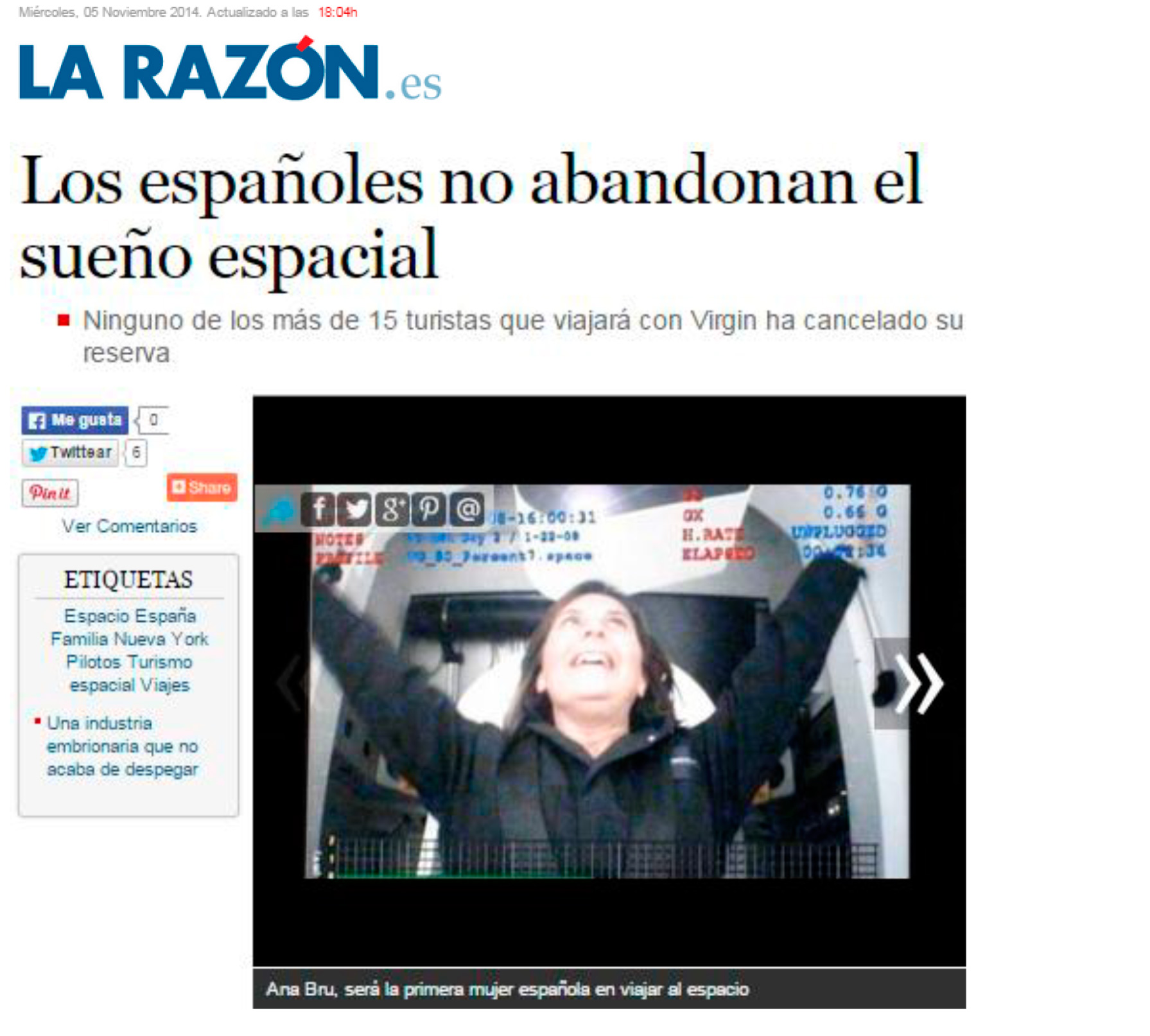 Ana Bru será la primera "turista espacial" española – Periodista Digital