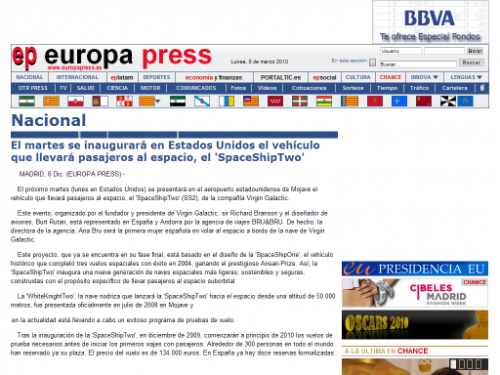 Informativos: Virgin Galactic – Antena 3