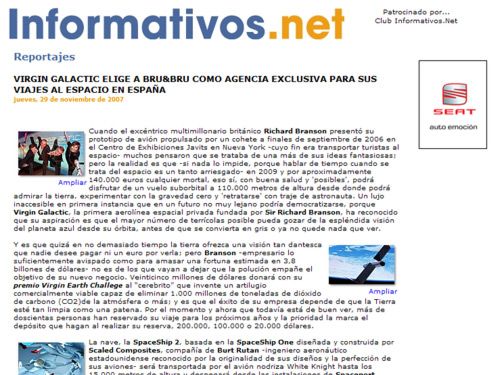 Virgin Galactic elige a BRU&BRU en España – Informativos.net