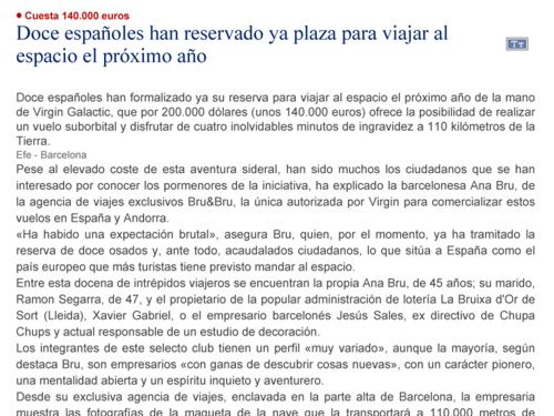 Doce españoles ya han reservado plaza al espacio – 20 Minutos