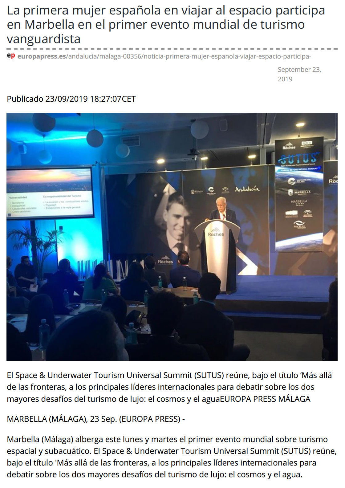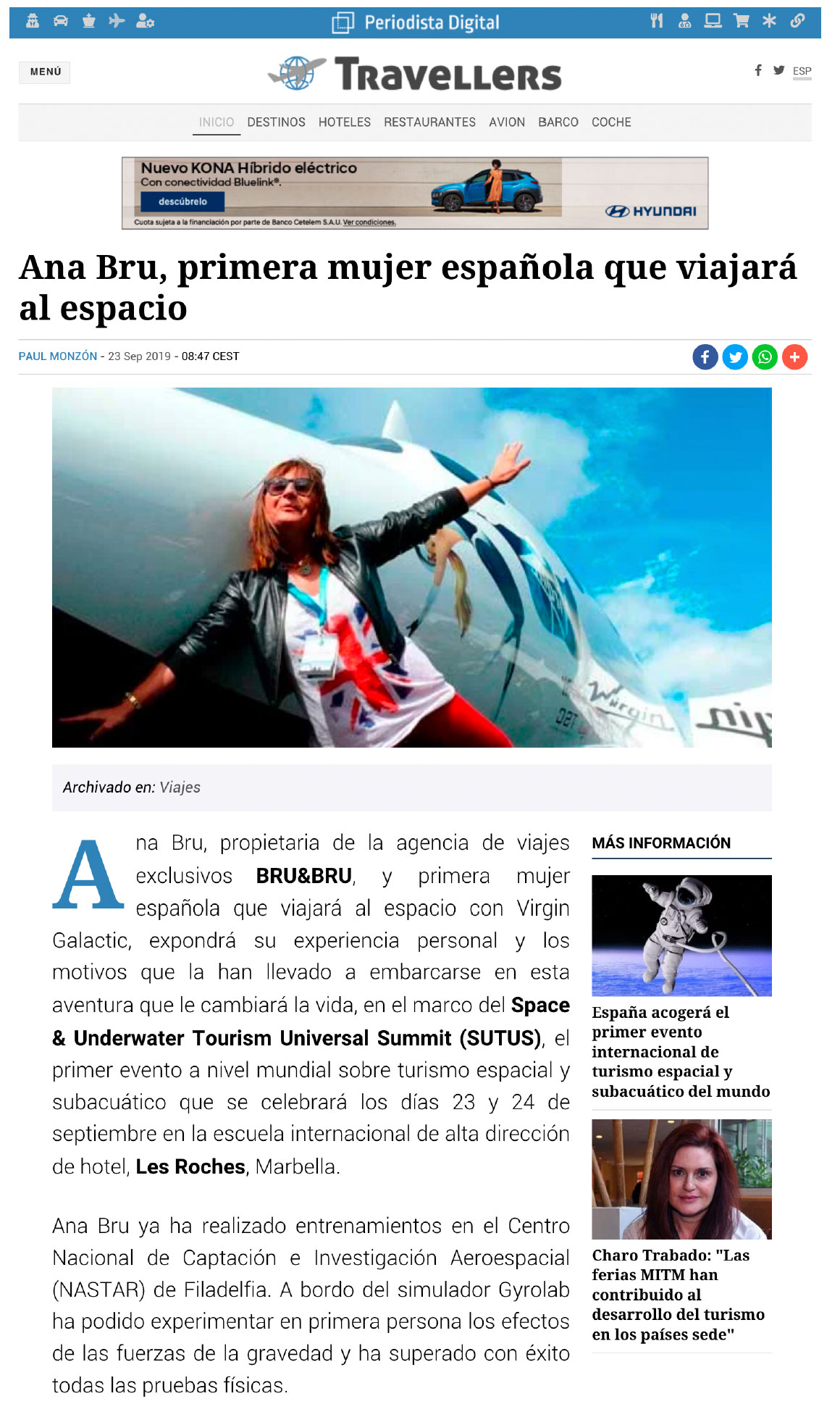 Bru & Bru agencia de viajes, Ana Bru en la presentación de los trajes espaciales de Virgin Galactic, 2019